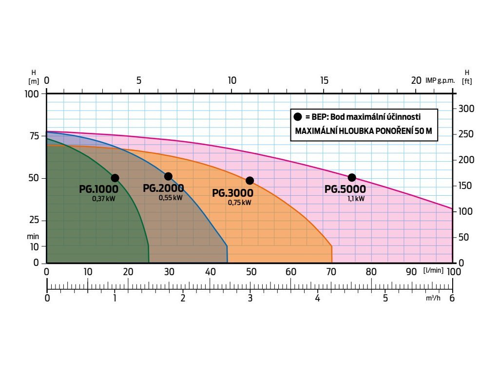 Maximální průtok modelů P&G EVO (Q): 6m3/h