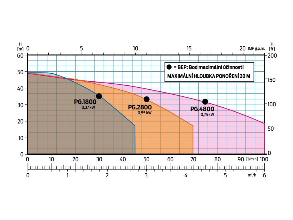 Maximální průtok modelů P&G EVO (Q): 6m3/h
