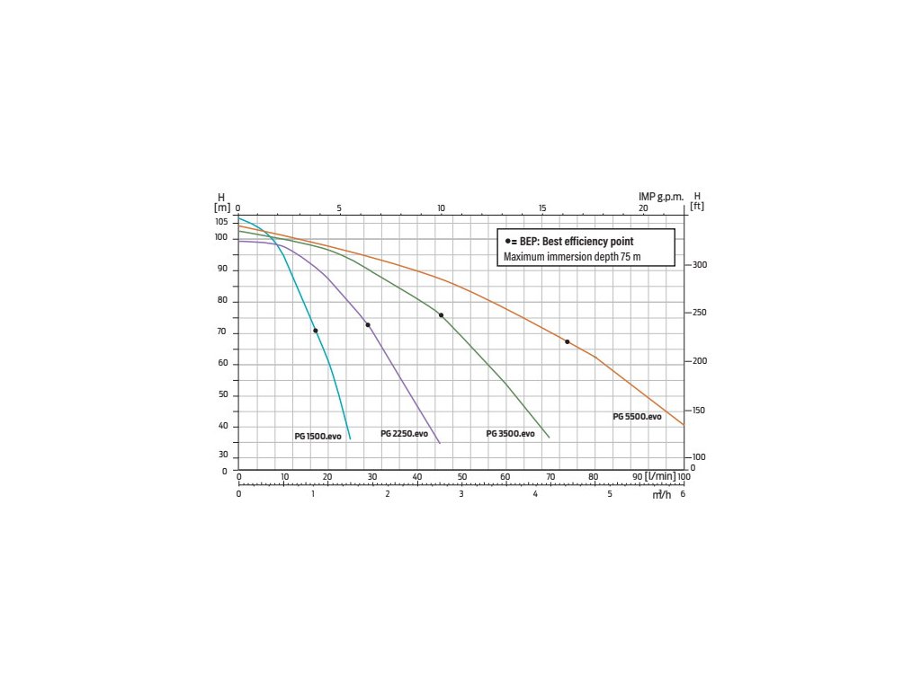 Maximální průtok modelů P&G EVO O2 (Q): 6m3/h